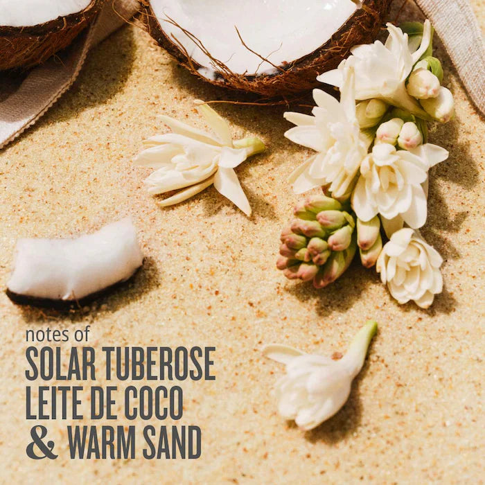 🌸 Notas de salida: flores solares y coco cremoso.